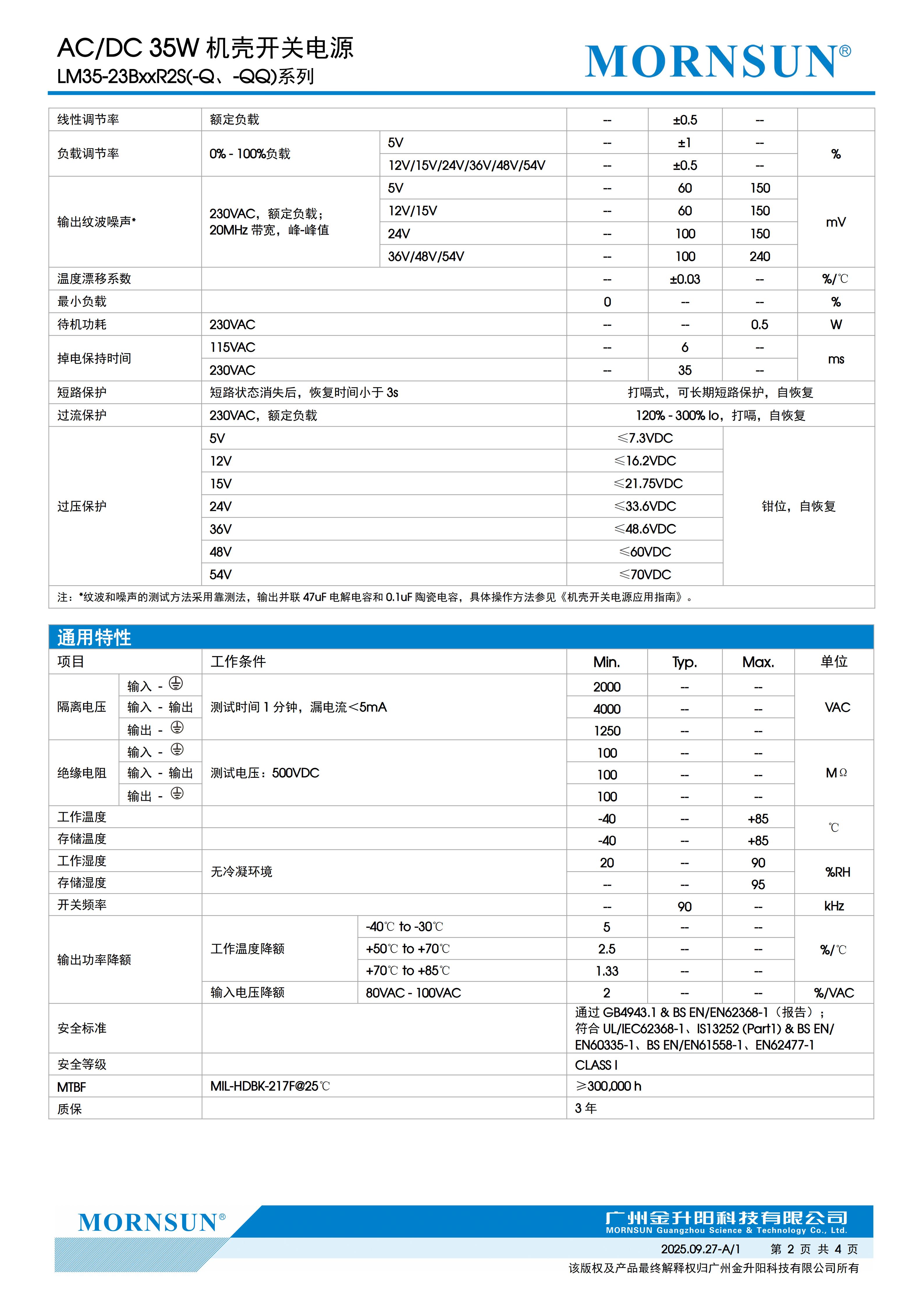 LM35-23BxxR2S 系列----是金升阳从体积、性能、工艺、结构等多维度出发,对工业机壳电源标准进行革新,为客户提供的超小型第二 代新工业标准金属机壳式电源。该系列电源具有全球通用输入电压范围、交直流两用、高性价比、低功耗、高效率、高可靠性、安全 隔离等优点。产品安全可靠,EMC 性能好,EMC 及安全规格满足 IEC/EN61000-4、CISPR32/EN55032、UL/IEC/EN/BS EN62368、 EN60335、EN61558、EN62477、GB4943 等标准。该系列广泛应用于工控、路灯控制、安防、通讯、智能家居等领域。产品应用在 电磁兼容比较恶劣的环境下时必须参考应用电路